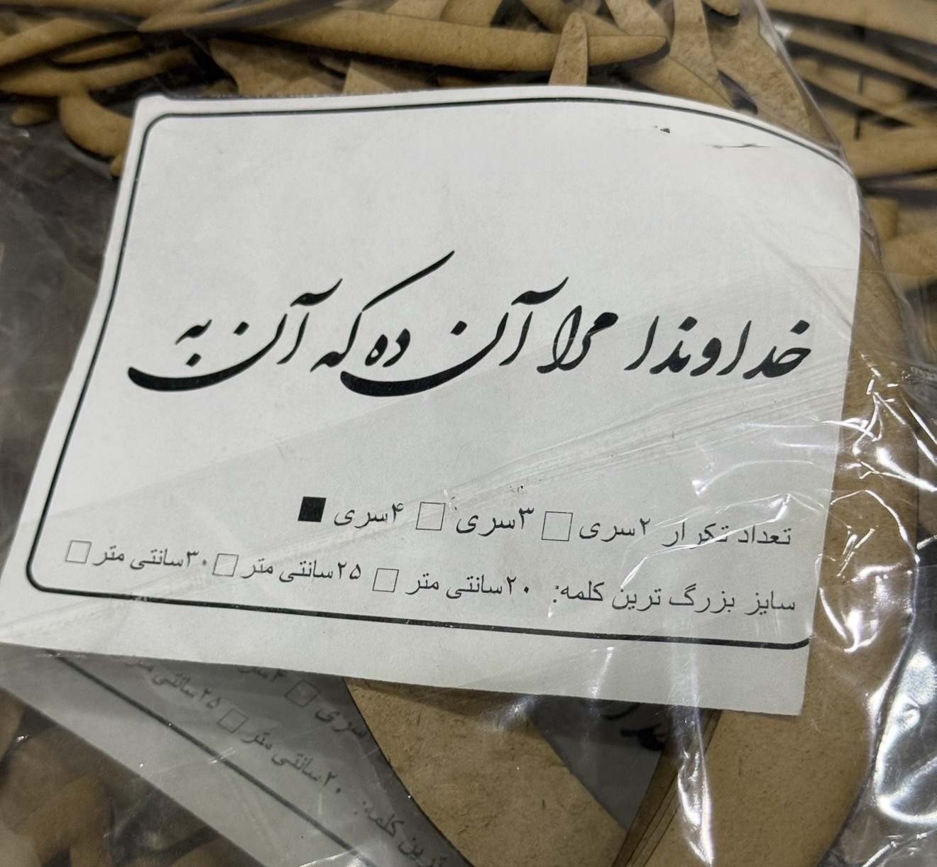 حروف کالیگرافی چوبی خداوندا مرا ان ده که ان به