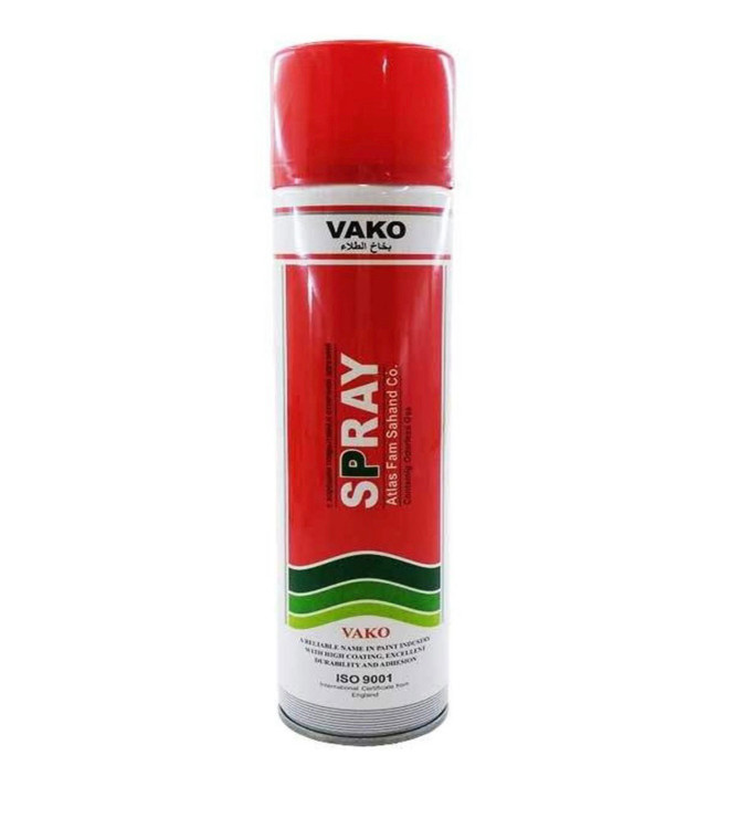 اسپري رنگ (VAKO) «واكو» بر پايه رزين آكروليك (روغنى) توليد مى شود. از ويرگي هاى اين نوع اسپرى مى توان به خشك شدن كمتر از 10 دقيقه اى آن اشاره كرد. براى اينكه كمترين مقدار شره كردن رنگ رخ دهدبراى پوشش مطلوب تر سطح موردنظر، بهتر است از فاصله 25 سانتى مترى، رنگ را اسپرى كنيم. از اين اسپرى مى توان براى سطوح مختلف از جمله فلز، چوب، شيشه و پلاستيك استفاده كرد. با توجه به كيفيت اين اسپرى رنگ مى توان از آن براى مصارف خانگي، هنرى و صنعتى بهره برد. رنگ موجود در اين اسپري بدون سرب است ومقاومت خوبى دربرابر ضربه و خراشيدگي دارد. ساختار رنگ واكو به گونه اي است كه از فلزات دربرابر زنكَ زدكَى محافظت مى كندو روى سطوحى كه مستقيما در معرض اشعمى U٧ (فرابنفش)هستند نيز مى توان از اين اسپرى رنگ استفاده كرد. استفاده آسان و پوشش دهى مطلوب اين محصول باعث مى شود جايگزين بسيار مناسبى براى رنگ آميزى با قلم مو باشد.