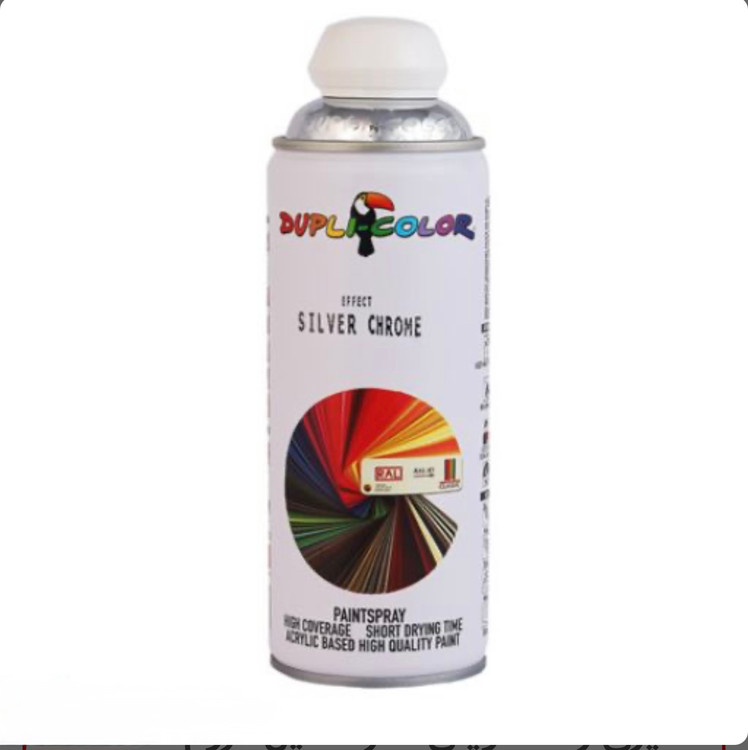 اسپری کروم دوپلی کالر با فام افکت استیل کروم مناسب برای رنگ آمیزی انواع وسایل با افکت کروم و مناسب جهت انواع کارهای هنری و دکوراتیو.